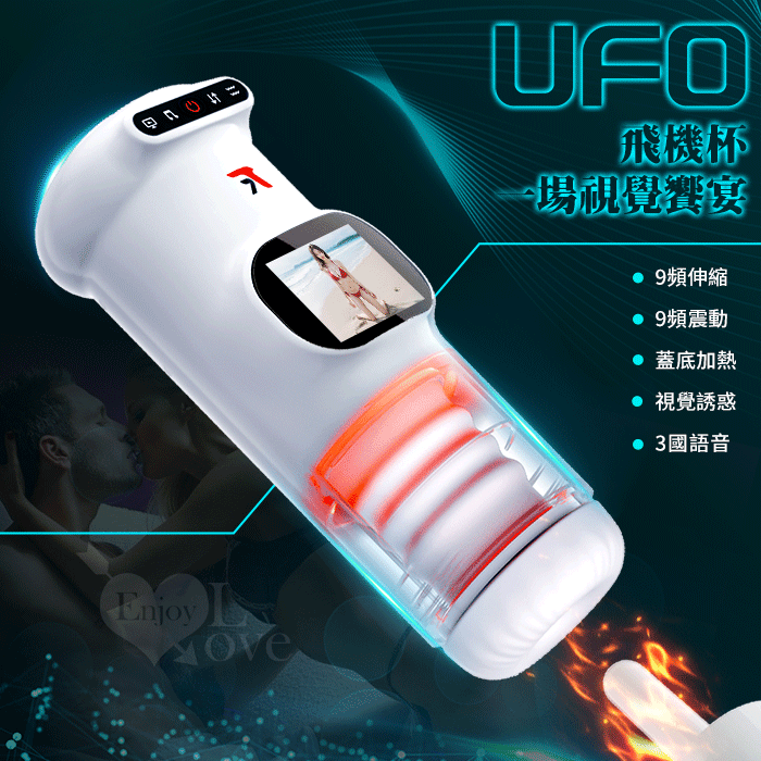 | UFO飛機杯 ‧ 9X9伸縮+震動肉粒滿腔智能加溫自慰杯﹝視覺美女圖 邊看邊撸+真人呻吟語音+液晶螢幕顯示+USB充電﹞