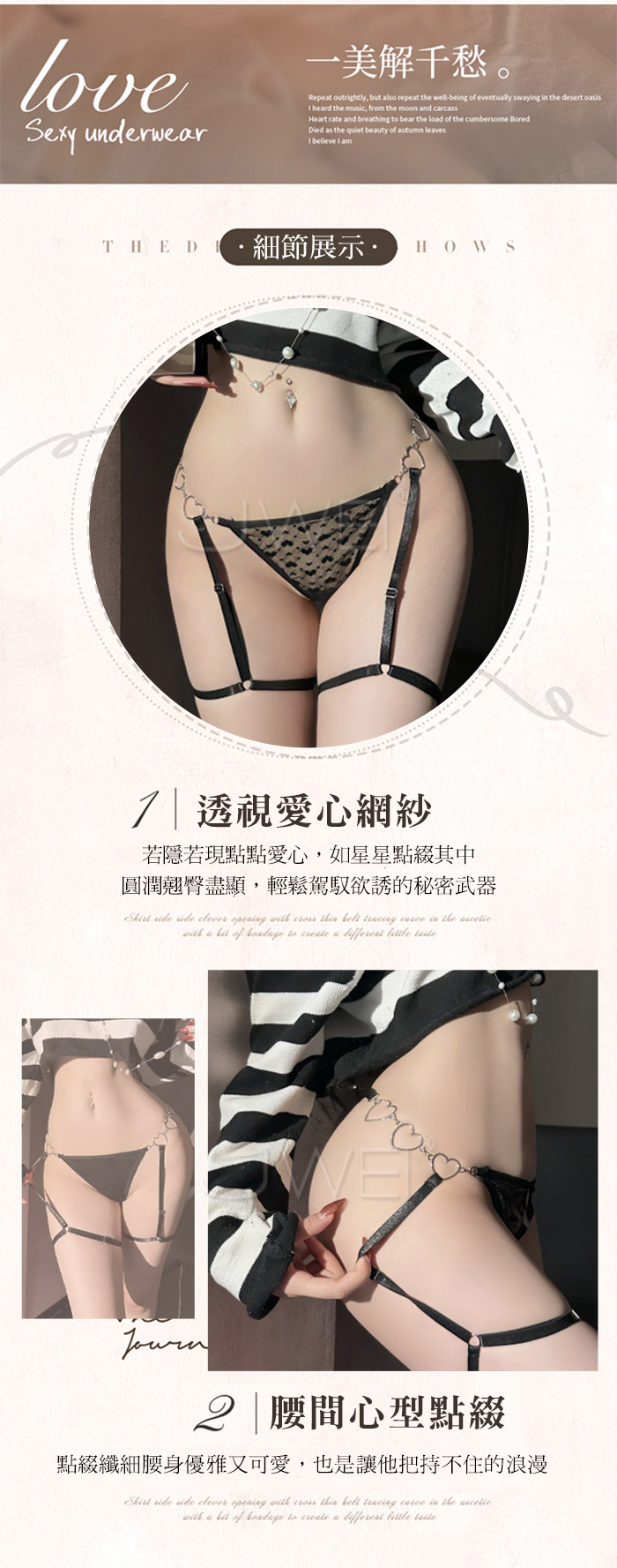 極夜誘惑.愛心鏈條綴腰吊帶低腰丁字褲【黑】
