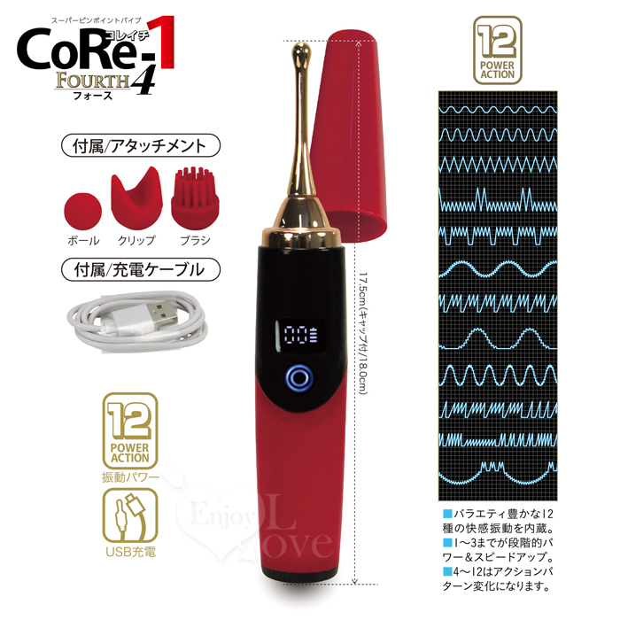 日本NPG.CoRe-1 進化糸第4弾! 12頻振動から絶頂快感陰乳刺激按摩器﹝數位螢幕/3件頭套組﹞