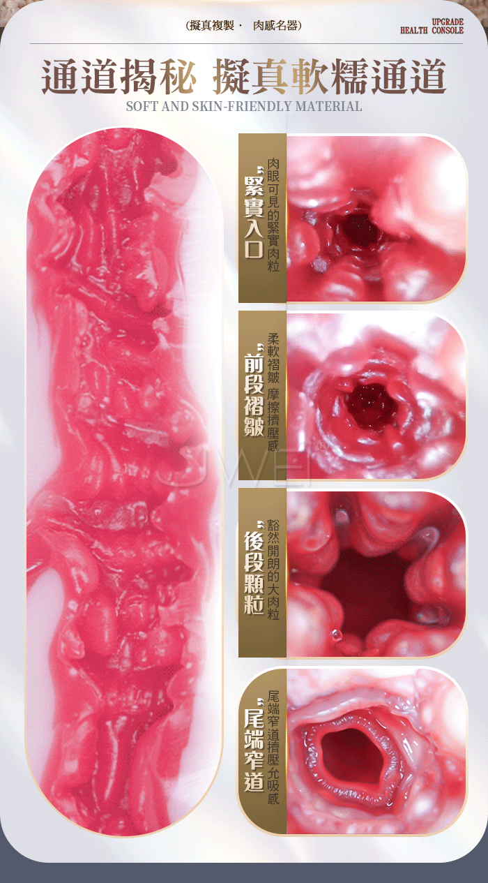 緊實包裹柔軟蜜道,皺褶摩擦擠壓感、大顆肉粒與窄道磨蹭夾吸