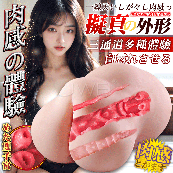 白露.一線天擬真桃型 三通道雙子宮新體驗 緊實刺激自慰套 【附贈日本原裝.洗い不要 濃密潤滑液-300ml】