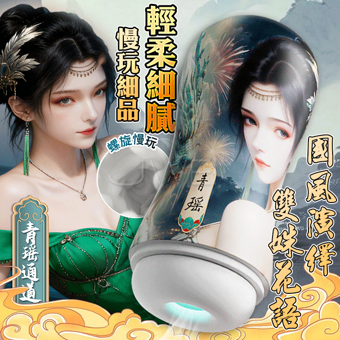 雙姝花語.國風演繹 輕柔細膩慢玩細品 真空包裹負壓吮吸飛機杯【青瑤】