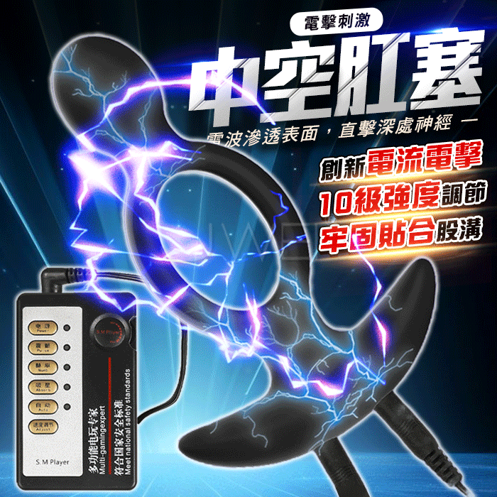 Electric shock脈衝電擊.10級強度微電流電擊刺激 牢固貼合中空矽膠肛塞【中文主機+電擊肛塞】