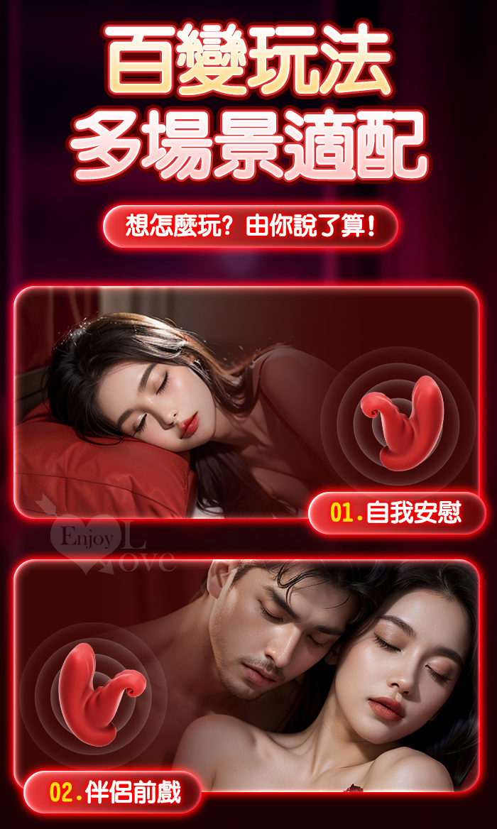 勞樂斯 ‧ 巧舌之吻~雙電機/10頻強震/超軟糯/貼合入體/內外同爽/手機APP/ 百變玩法穿戴按摩器 ﹝具兩種操控模式﹞酒紅