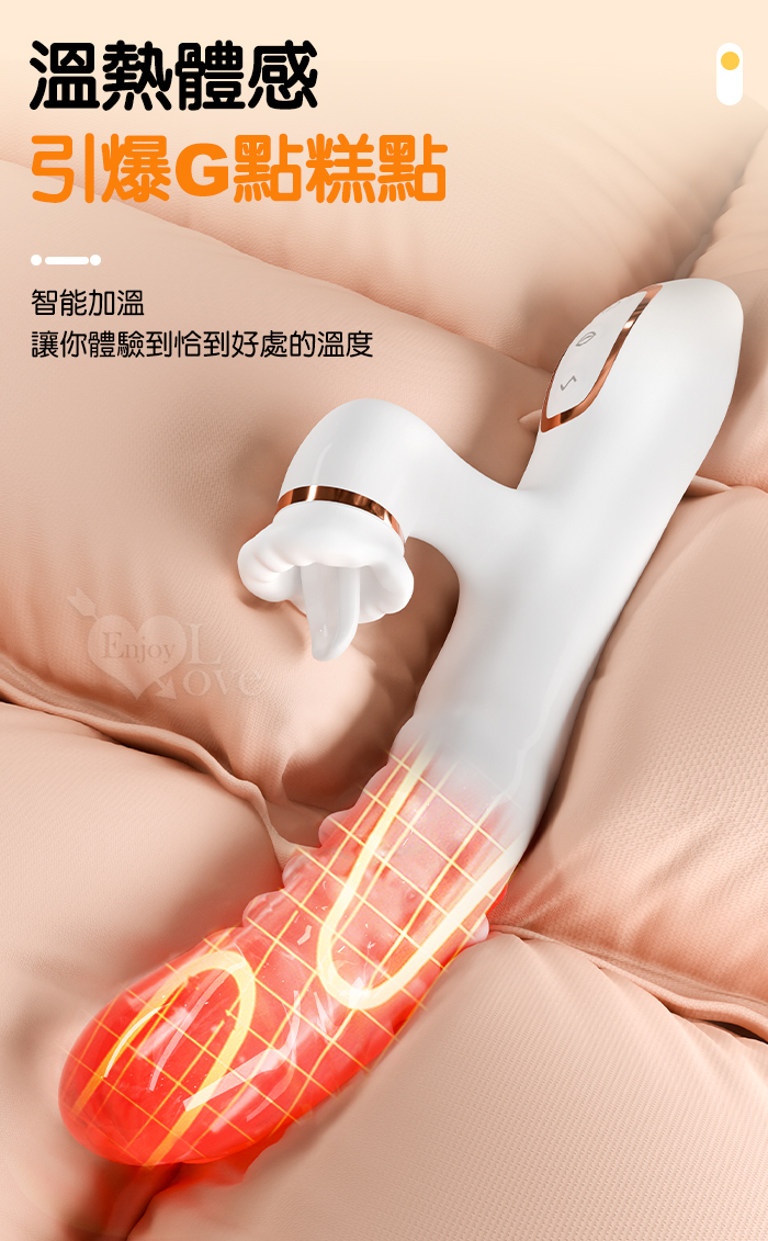 珠旋四重奏 ‧ 6X6伸縮+旋轉+震動+舌舔/內外刺激多功能按摩棒﹝智能加溫/雙排滾珠鑽動/舌舔撩﹞