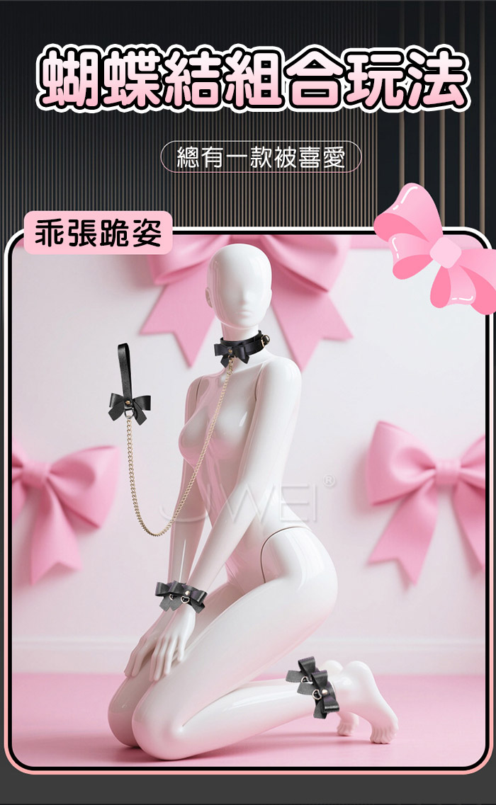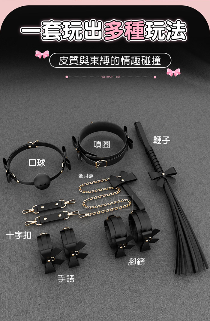 | SM束縛套裝. 黑色情趣 蝴蝶結皮革捆綁束縛7件組套裝