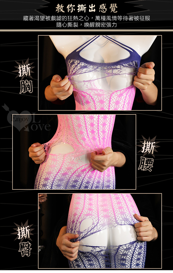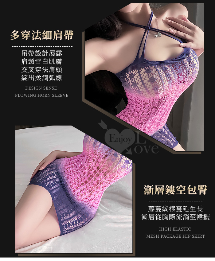 可撕鏤空網紗連身裙|漸層彈力包臀睡衣・交叉肩帶多穿法