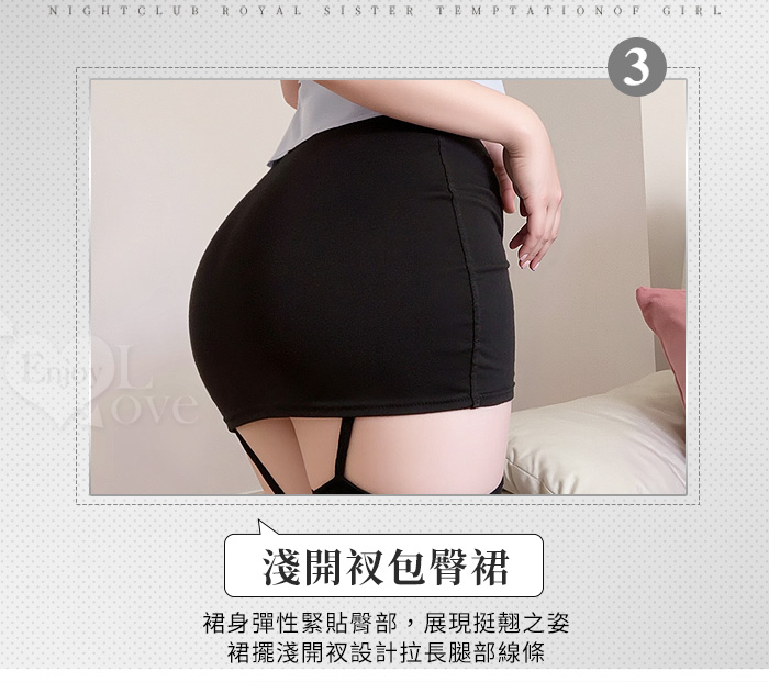 ►您現在的位置:首頁>教官角色扮演服!俐落挺版側開衩微傘擺短襯衫高腰包臀裙四件式套裝