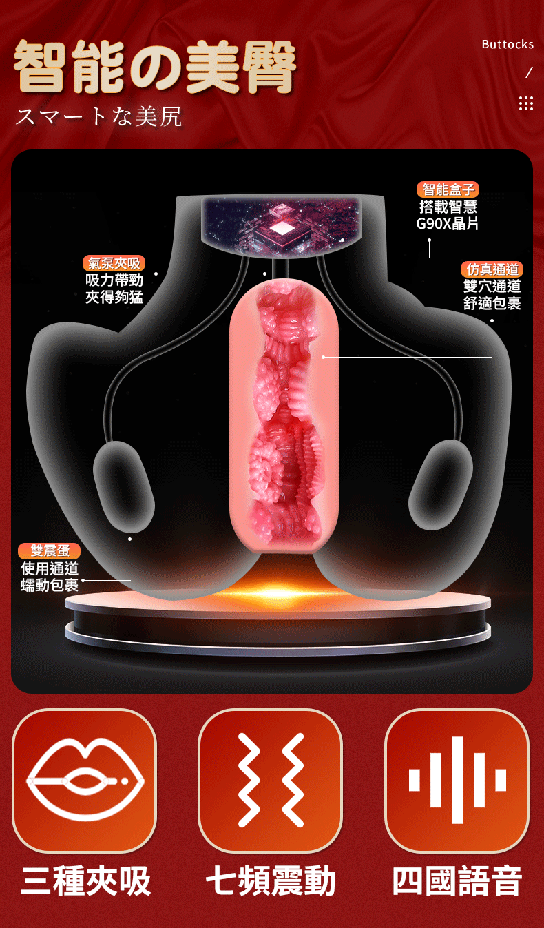 柯基臀【吮吸青春款】細膩皮膚 顆紋陰肛二穴自慰器﹝智能夾吸吮+震動﹞贈耳機