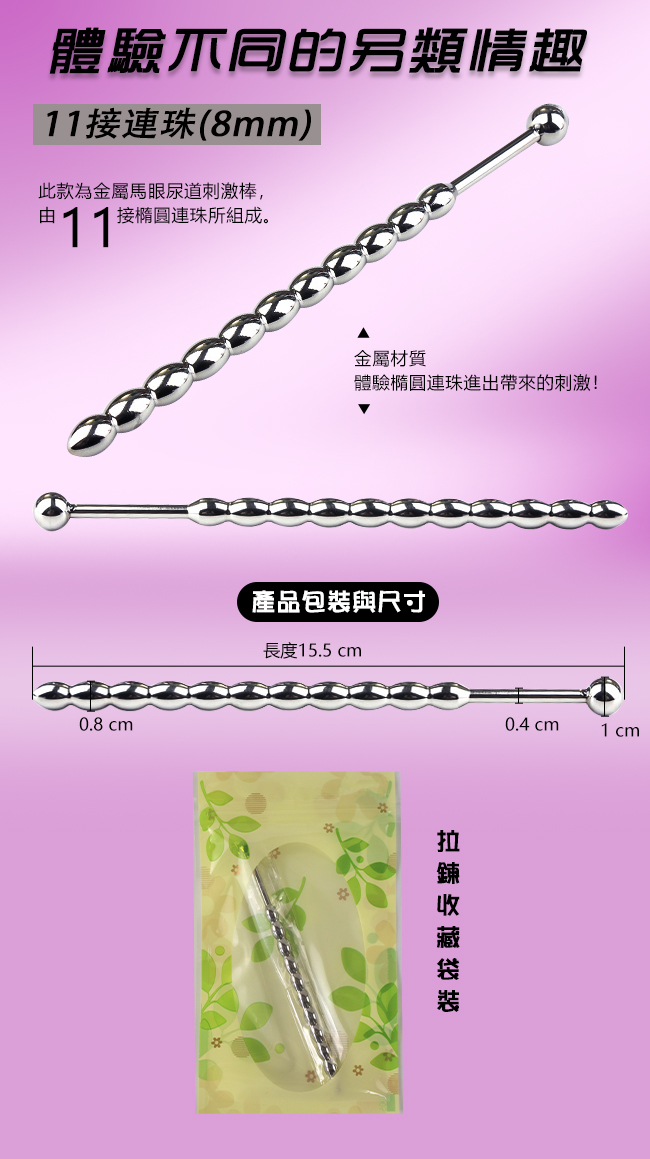 JO禁戀 ‧ 金屬馬眼尿道刺激擴張入侵 - 11接連珠﹝8mm﹞