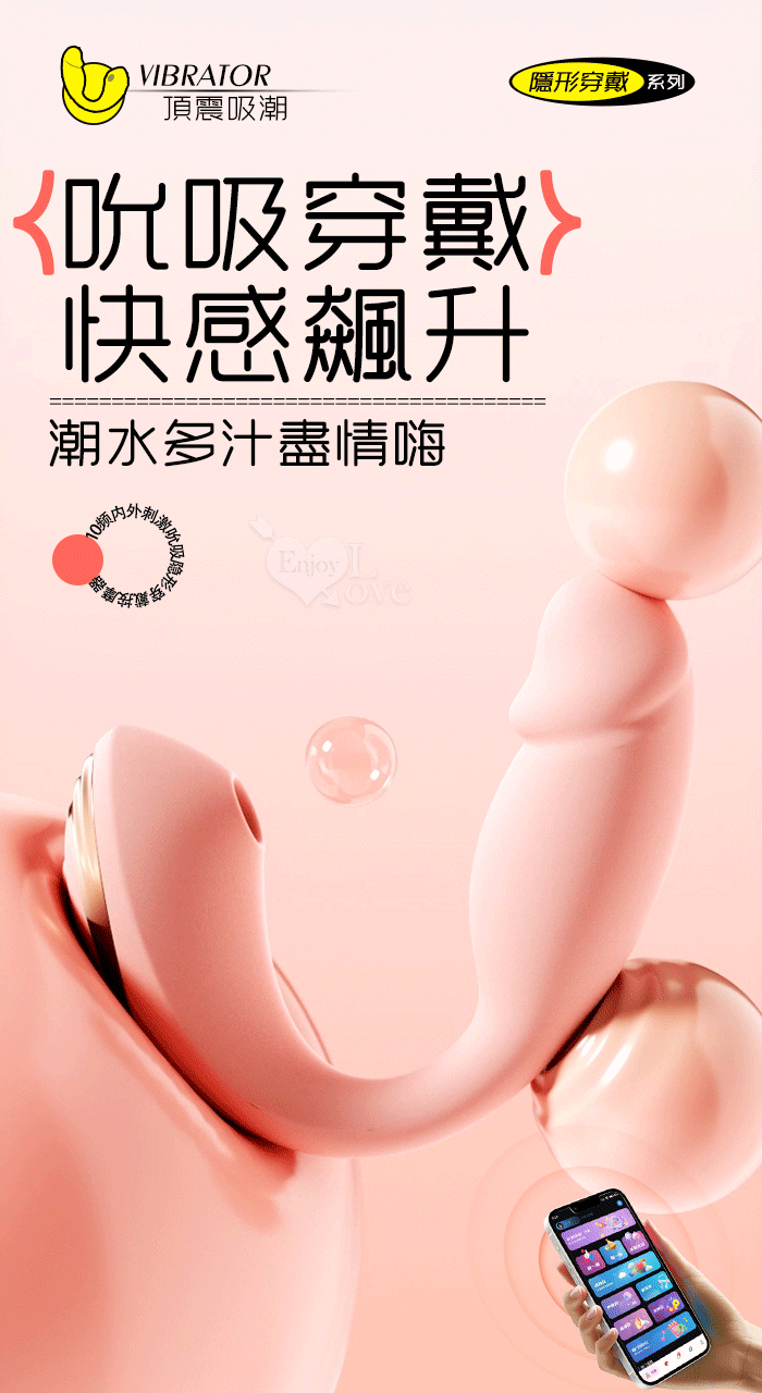 | ROSELEX 頂震吸潮 ‧ 10頻內外刺激吮吸巨能震隱形穿戴老二按摩器 - 可手機APP遙控﹝具兩種操控模式﹞粉