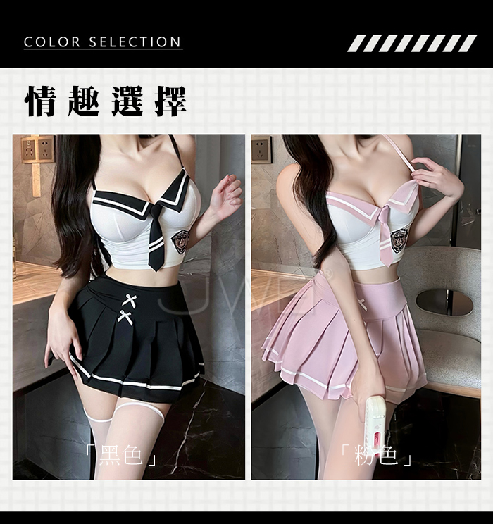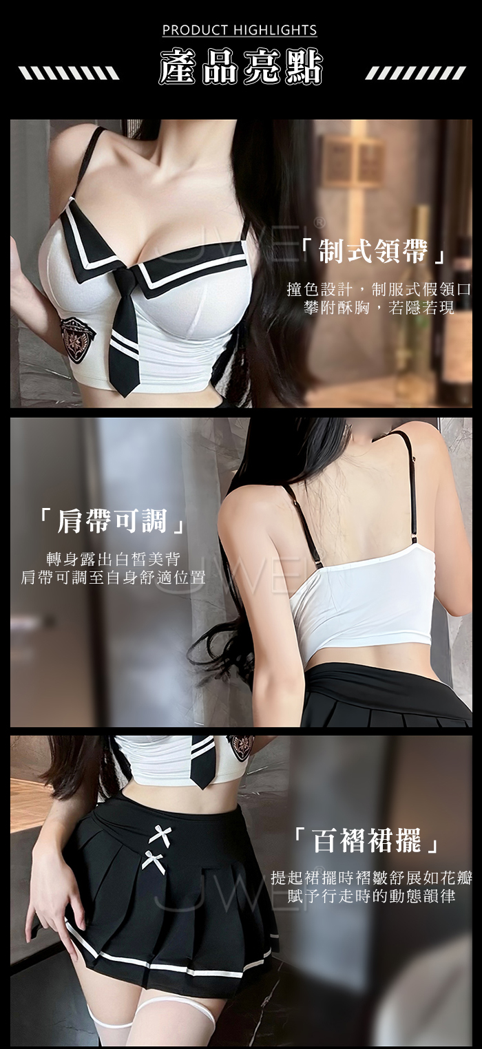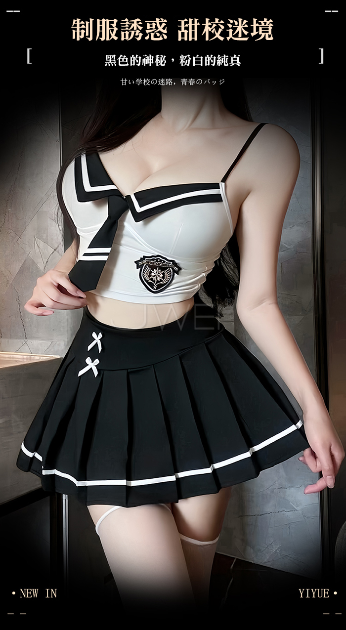 首頁>甜校迷境.純愛撞色制式領帶白褶裙學院系cos套裝【上衣+裙子】黑色