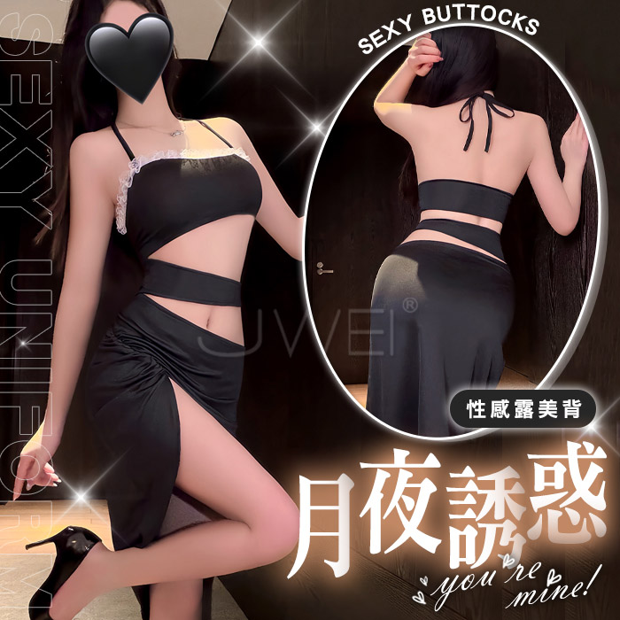 禁欲之花.性感開胸露乳花蔓蕾絲透膚包臀輕熟秘書裝【短上衣+連身裙+T褲】