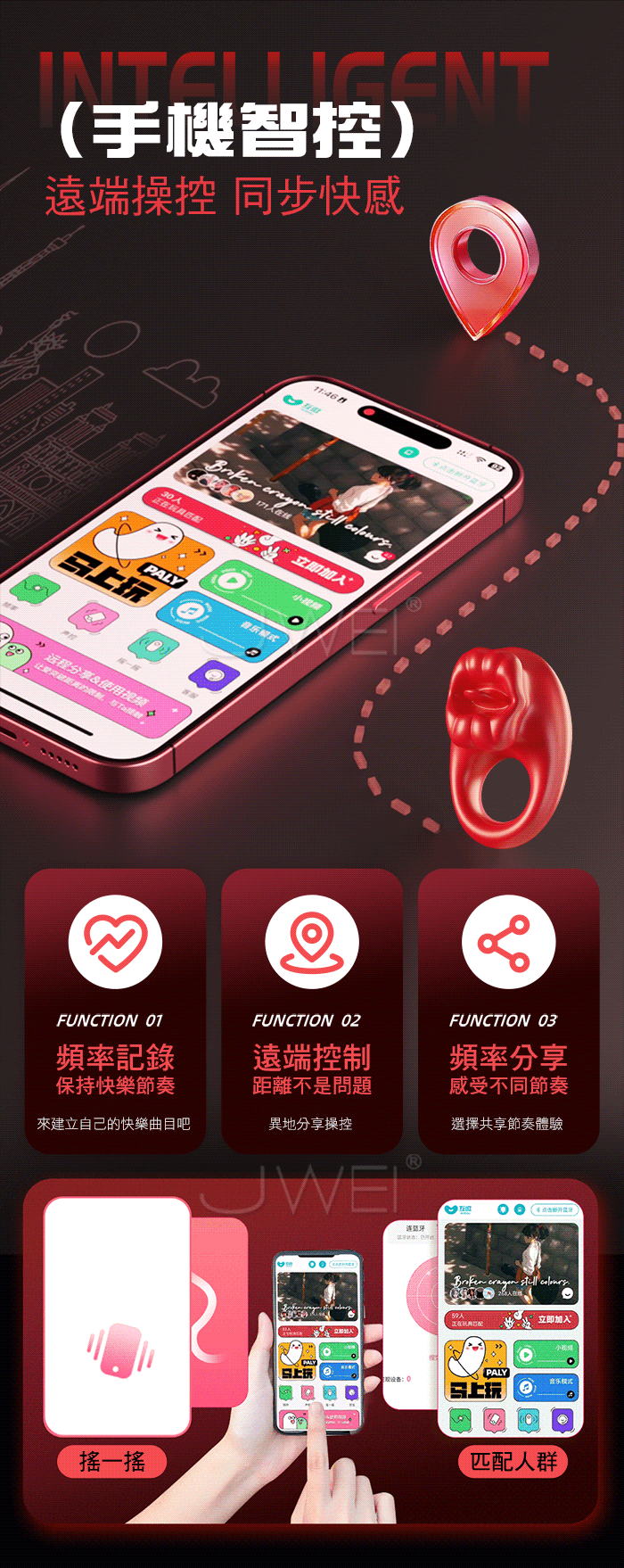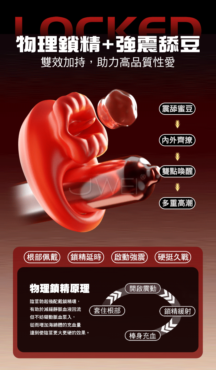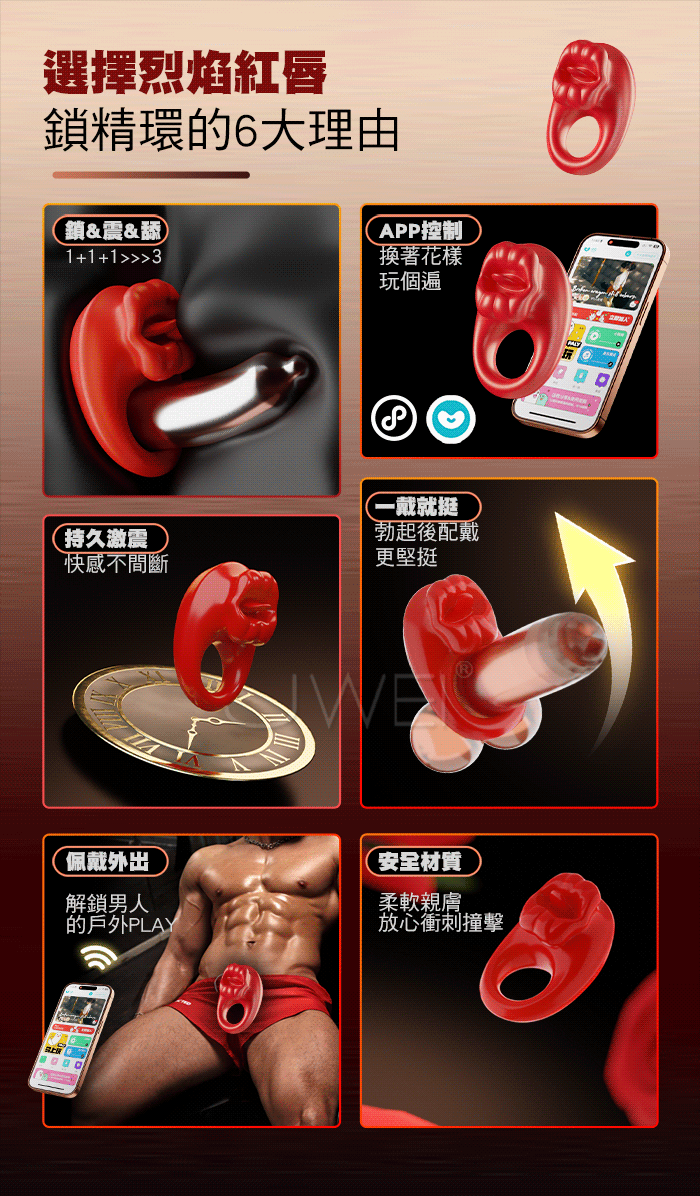 GALAKU.烈焰紅唇 10頻酥麻強震 邊啪邊震 APP智控震動鎖精環