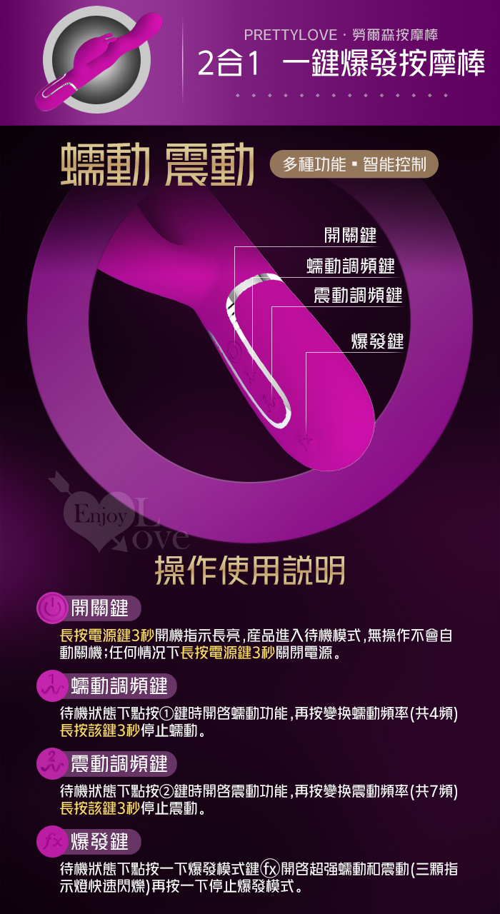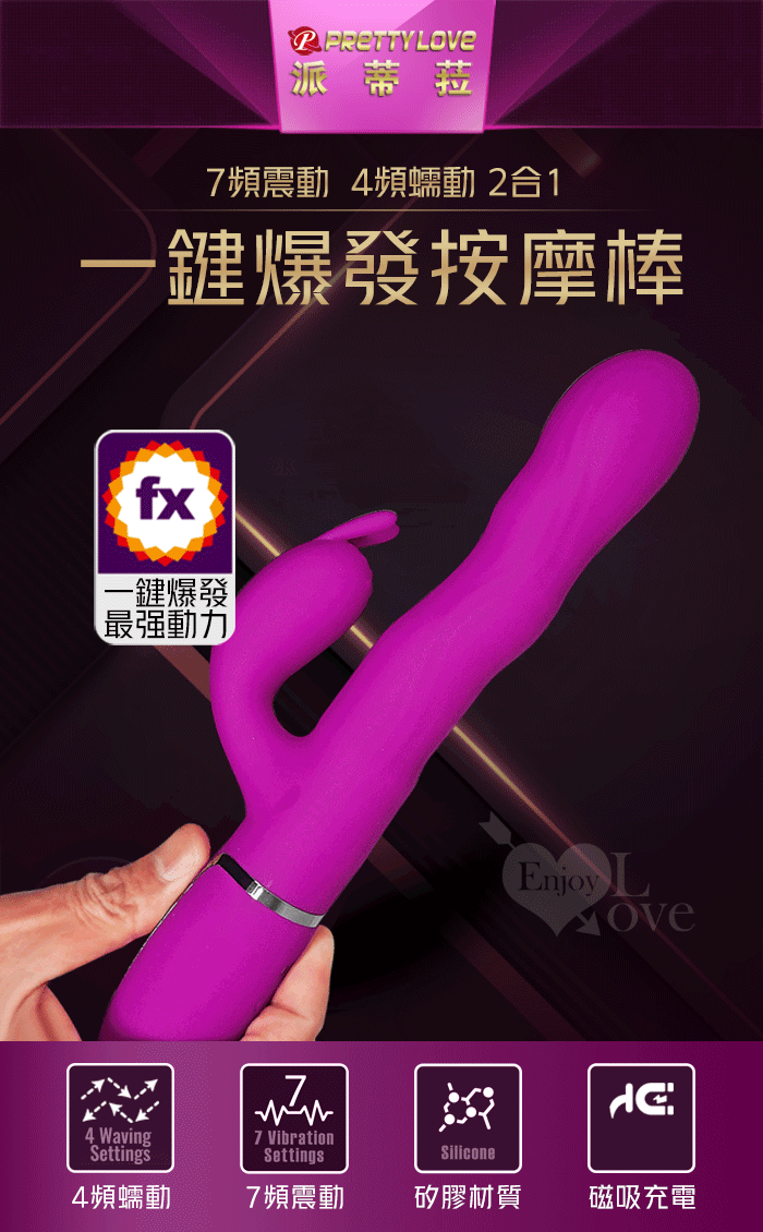 派蒂菈 ‧ Loursen 勞爾森 4蠕動+7震動 瘋狂蠕動震感內外夾擊入體按摩棒-洋紅