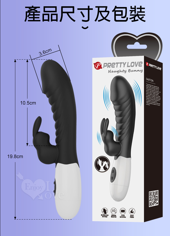PRETTY LOVE 派蒂菈 ‧ 頑皮兔 內外雙重30頻雙頭同震按摩棒-充電款