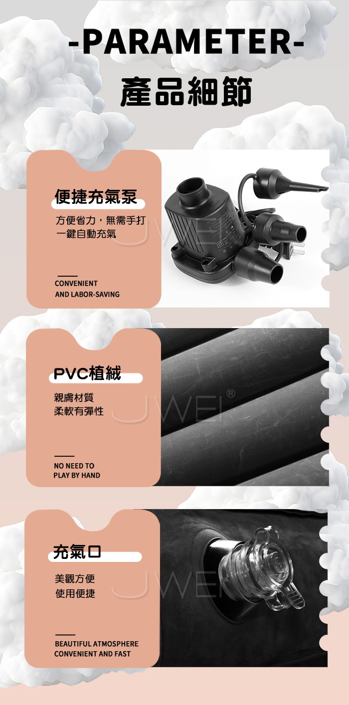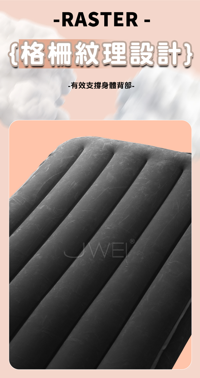 讓愛漂浮在雲端,SEX 充氣情趣床墊 輕柔而充滿情趣,不估空間,增添情趣 彈力十足回彈迅速,格柵紋理 有效支撐身體背部 ■尺寸:大小詳如圖片標示 ■材質:PVC植絨 ■注意: SM道具請以安全、清醒、非強迫為使用原則, 使用前請先徵得對方的同意