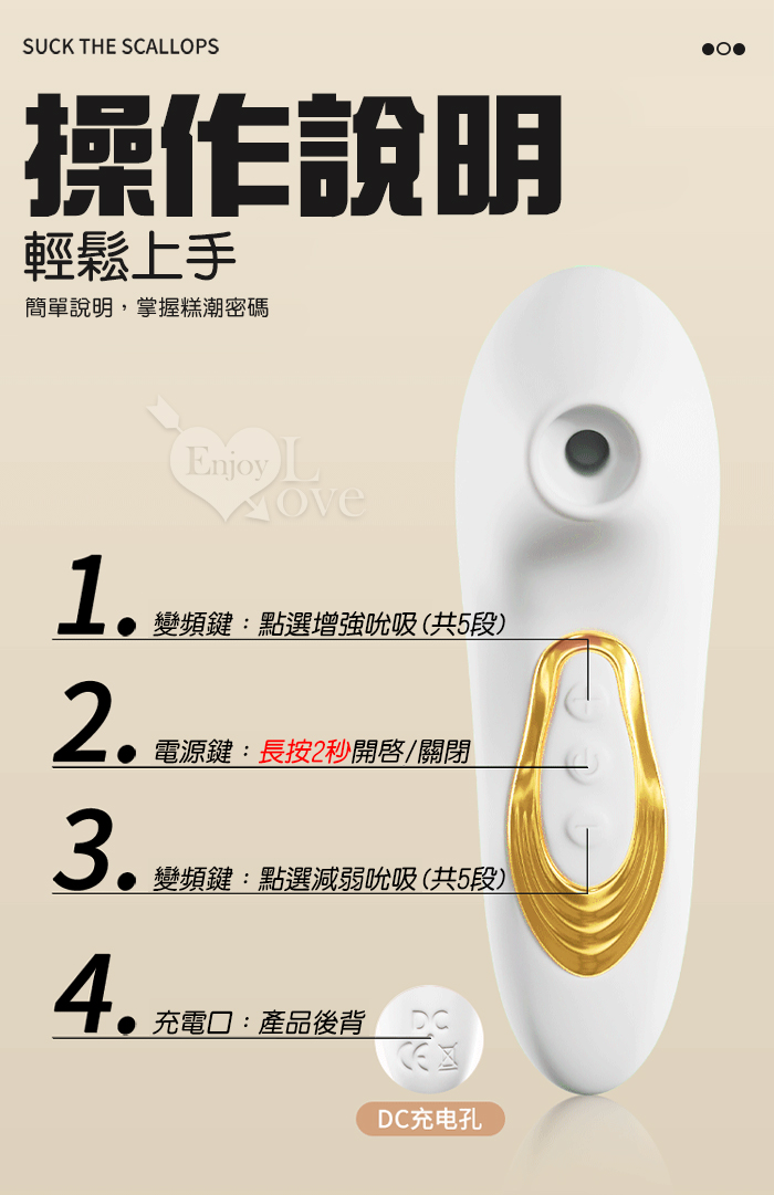 吸歡貝.真空吸吮酥麻快感口愛器﹝5段調速強弱+小巧吻吸+USB充電﹞乳白