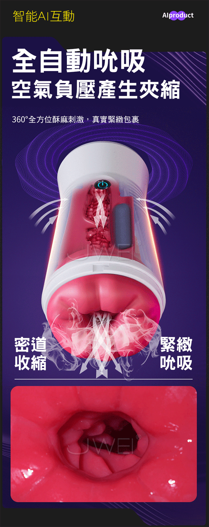 真空夾震,360度環繞舒爽,空氣負壓產生夾縮,真實緊緻包裹
