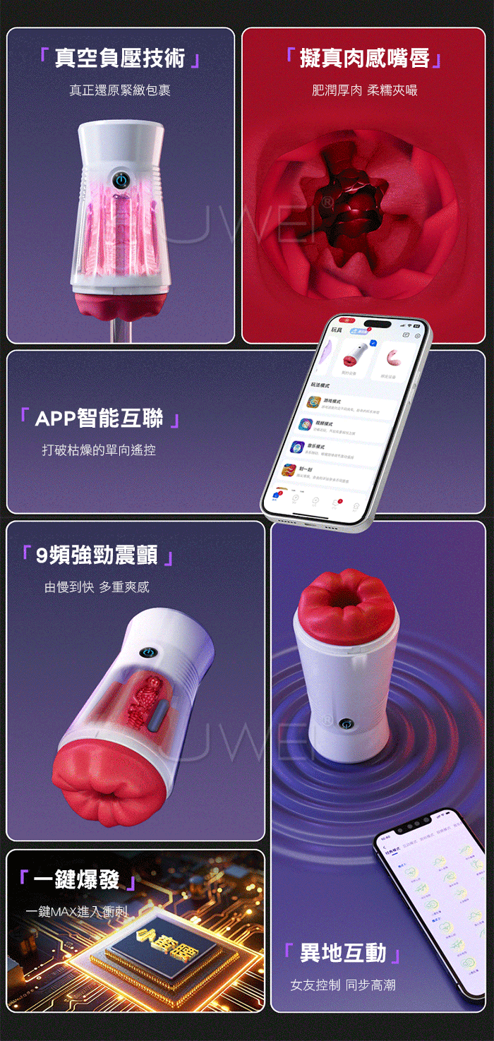 | 小蠻腰.9頻強勁震顫 真空負壓吮吸 APP智能遠控口愛飛機杯