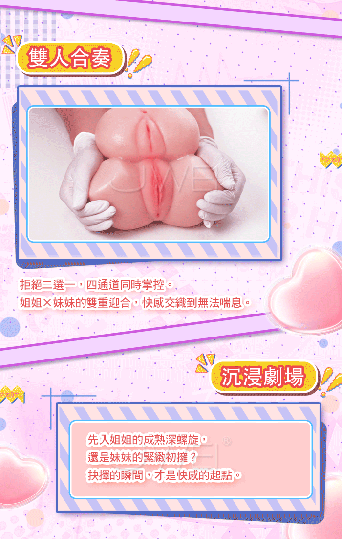 4通道玩法多樣,慢玩纏綿+刺激衝刺,妹:緊縮螺紋+仿貞膜;姐:大波浪+吸吮顆粒