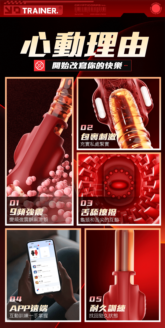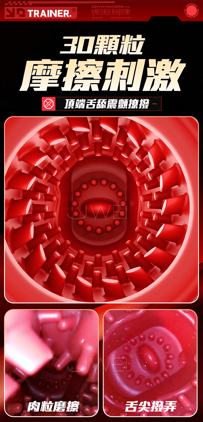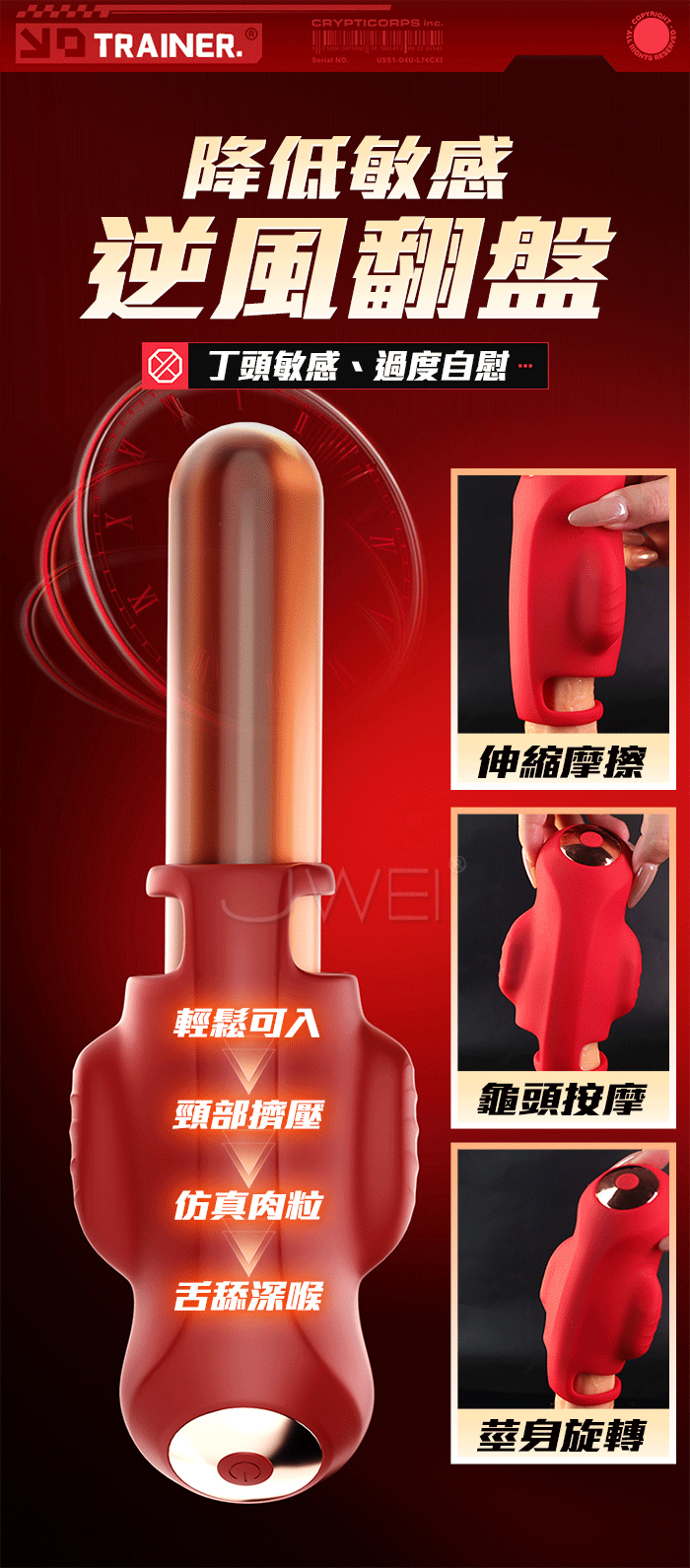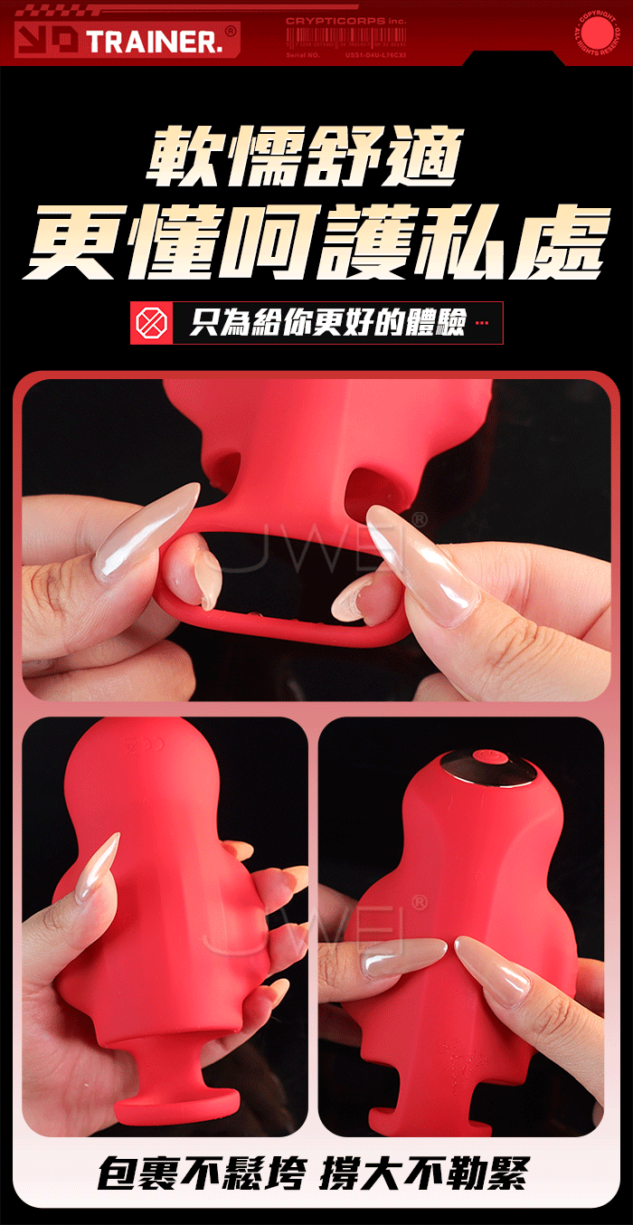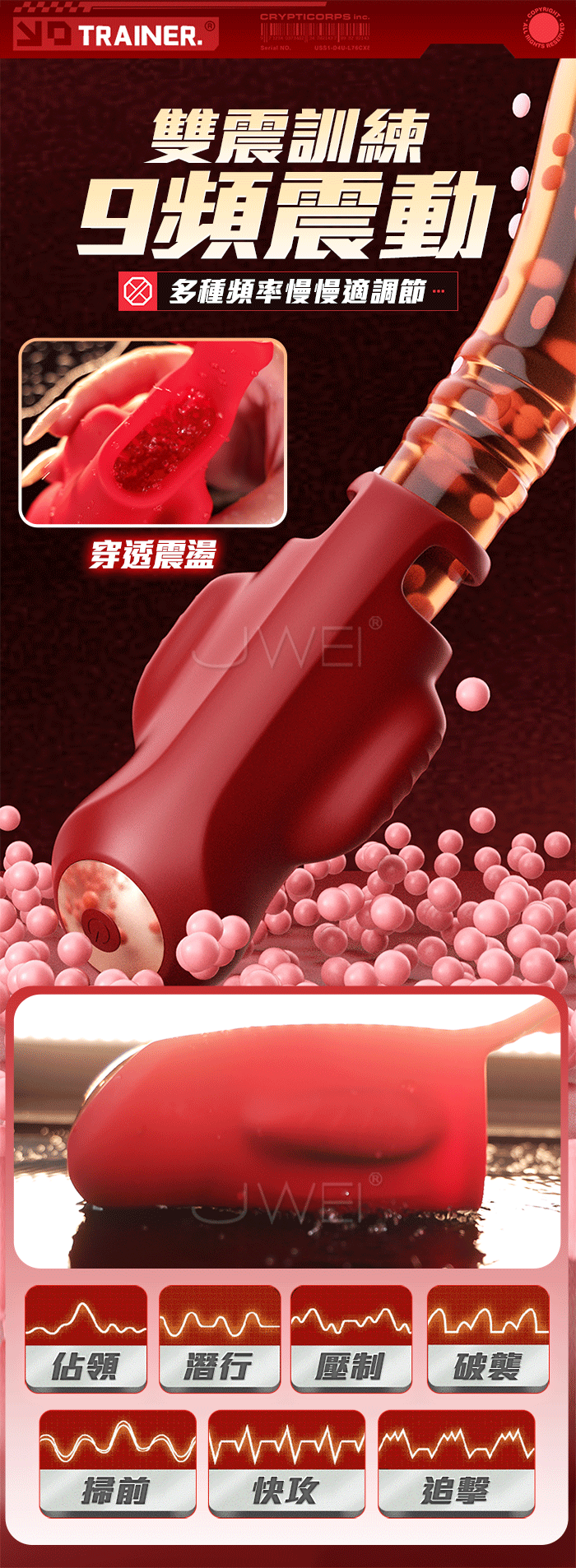 手推式APP訓練器,舌慰按摩,降敏訓練 雙震刺激,9頻震動,多種頻率慢慢適調節 30顆粒摩擦刺激,頂端舌舔震顫撩撥 產品規格 ■尺寸:大小詳如圖片標示 ■材質:TPE ■特點:9頻震動、APP智控