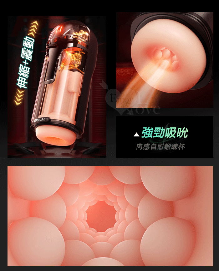 | EROLABS 擼霸全配版 ‧ 智能伸縮/吸吮/震動/語音 緊實肉感自慰鍛練杯﹝液晶數碼9頻伸縮X9頻吸吮X9強震+4國淫聲+耳機﹞黑色