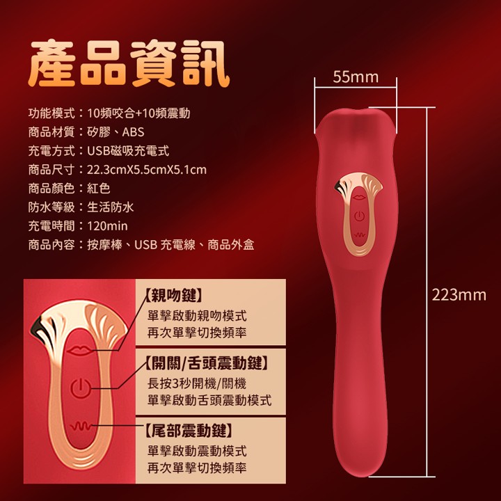 首頁>吻慾潮 10頻咬合親吻+10頻震動舌舔 吮吸G點按摩棒 - USB磁吸充電式