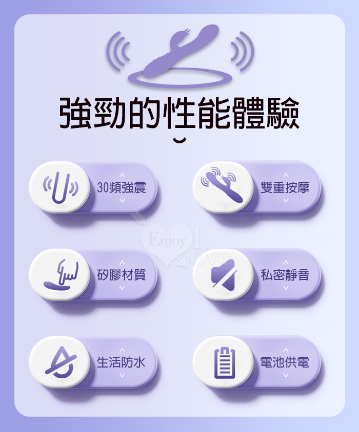 PRETTY LOVE 派蒂菈 ‧ 頑皮兔 內外雙重30頻雙頭同震按摩棒-深紫